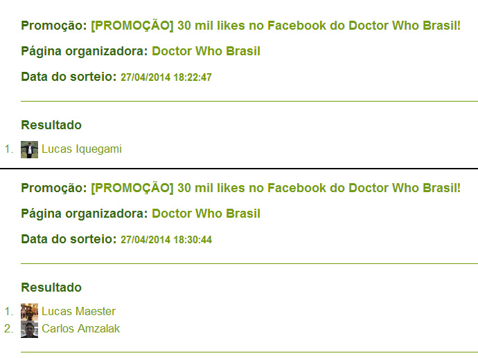 Avisamos que houve mais de um sorteio já que nem todos os ganhadores haviam seguido todos os passos corretamente.