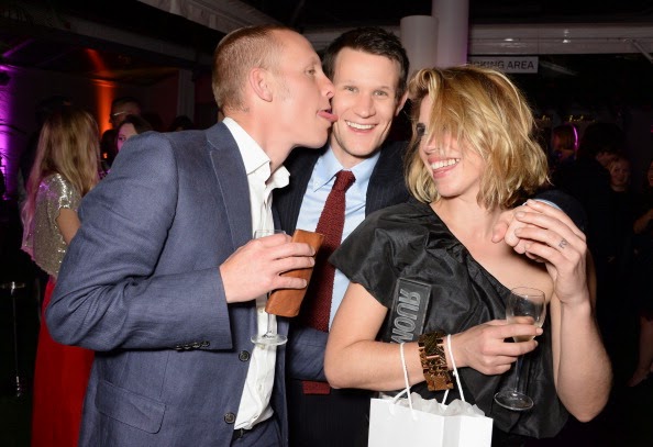 Ah, o rapaz na foto tentando lamber o Matt Smith é o ator Laurence Fox, marido da Billie Piper!