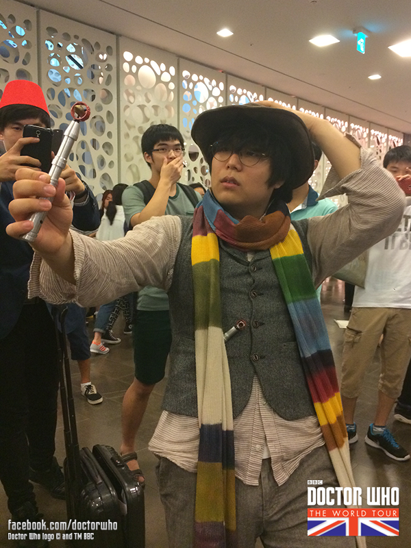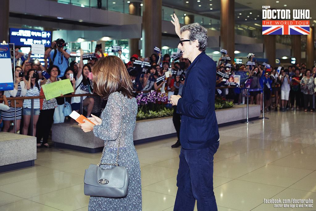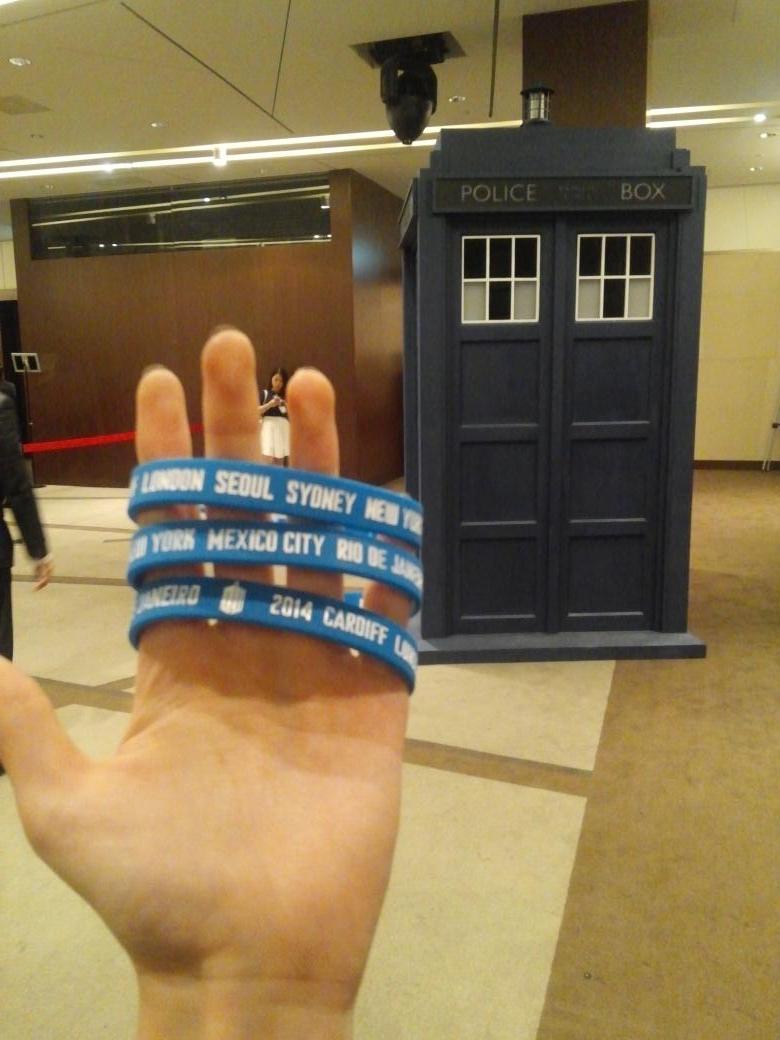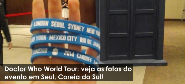 A Doctor Who World Tour continua a todo vapor, e dessa vez o elenco está lááááá do outro lado do mundo, na Ásia, mais especificamente em Seul, na Coreia do Sul, para divulgar a chegada de Peter Capaldi! Acompanhado de Jenna Coleman, o evento por lá BOMBOU! Se liga nas Tardis espalhadas por toda a cidade, os cosplays, o local do evento e essas pulseirinhas azuis. Espero que tenhamos elas por aqui também – olha ali o nome do Rio de Janeiro! 😉