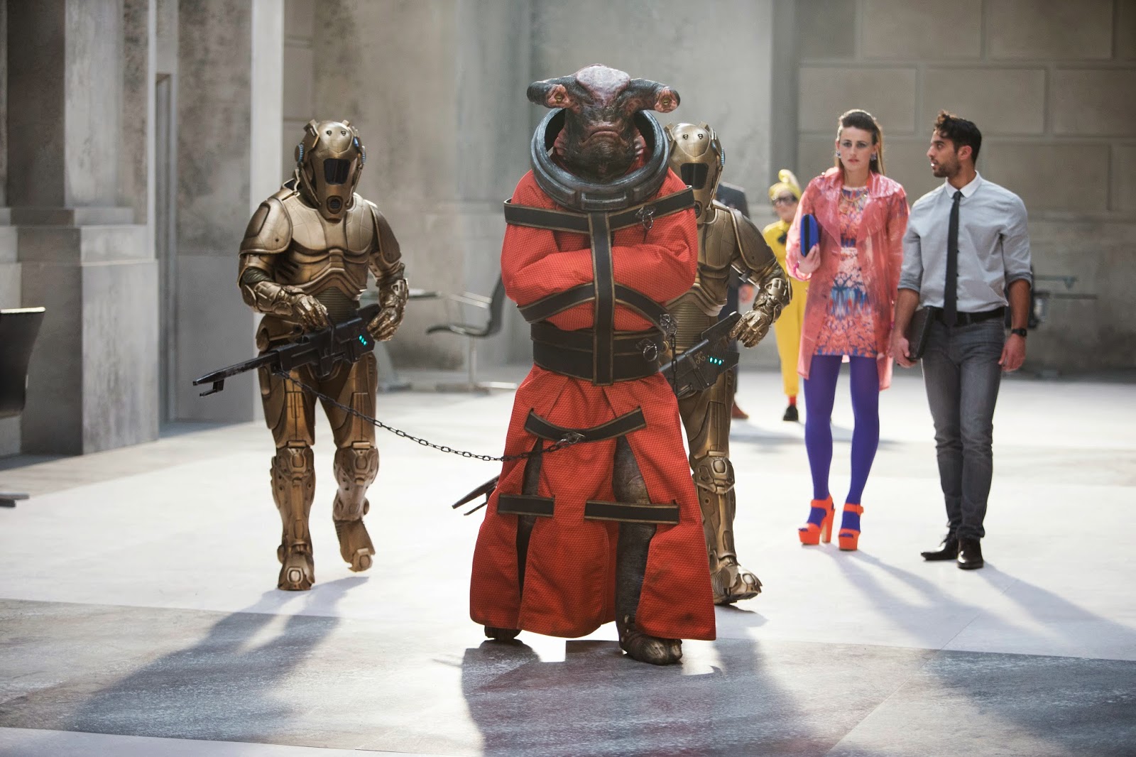 Um integrante da família Slitheen – Direto de Raxacoricofallapatorius, a família criminosa teve sua primeira aparição em “Aliens of London”, quarto episódio da primeira temporada, de 2005. Depois das aparições na série, alguns dos integrantes da família chegaram a aparecer em The Sarah Jane Adventures.