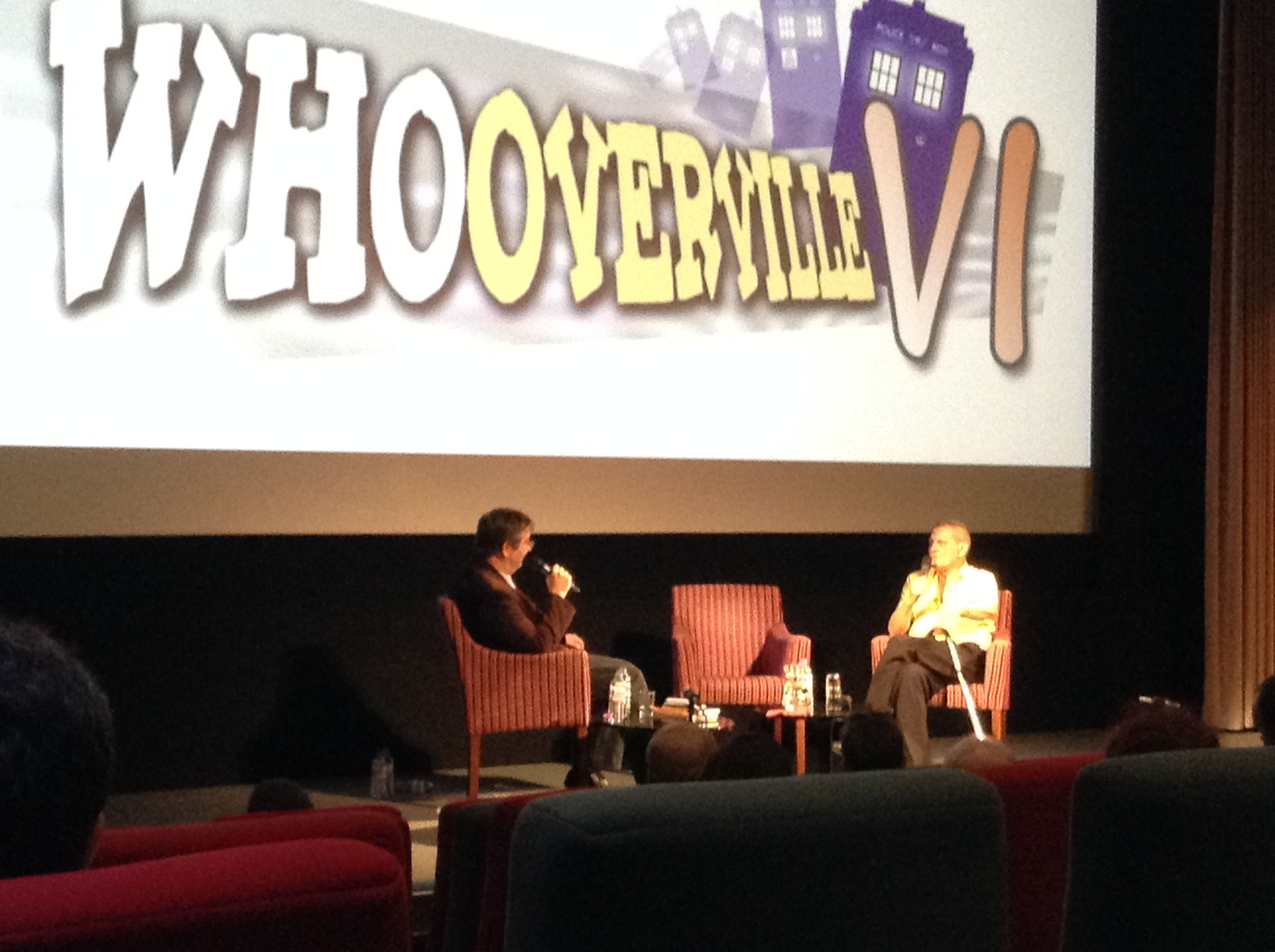 Um dos painéis mais aguardados do dia foi o do Derrick Sherwin – ele é o único produtor da série nos anos 1960 ainda vivo, além de ter sido responsável pela escolha do Jon Pertwee como o 3º Doutor (e exilá-lo na Terra), criador da U.N.I.T. e do Brigadeiro e criador dos Time Lords – um depoimento histórico que emocionou a plateia. A idade avançada não o impediu de poder compartilhar momentos históricos com o público presente.