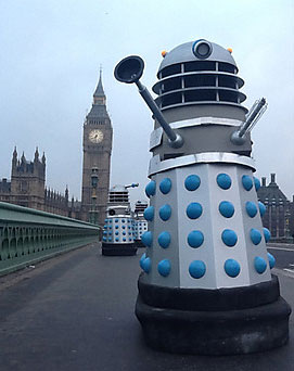 Gatiss explica que o original também foi filmado em um domingo de manhã, naquele exato local, com réplicas idênticas dos Daleks, e que até os policiais e o Primeiro Ministro estavam empolgados. Uau!! Assista ao videozinho!