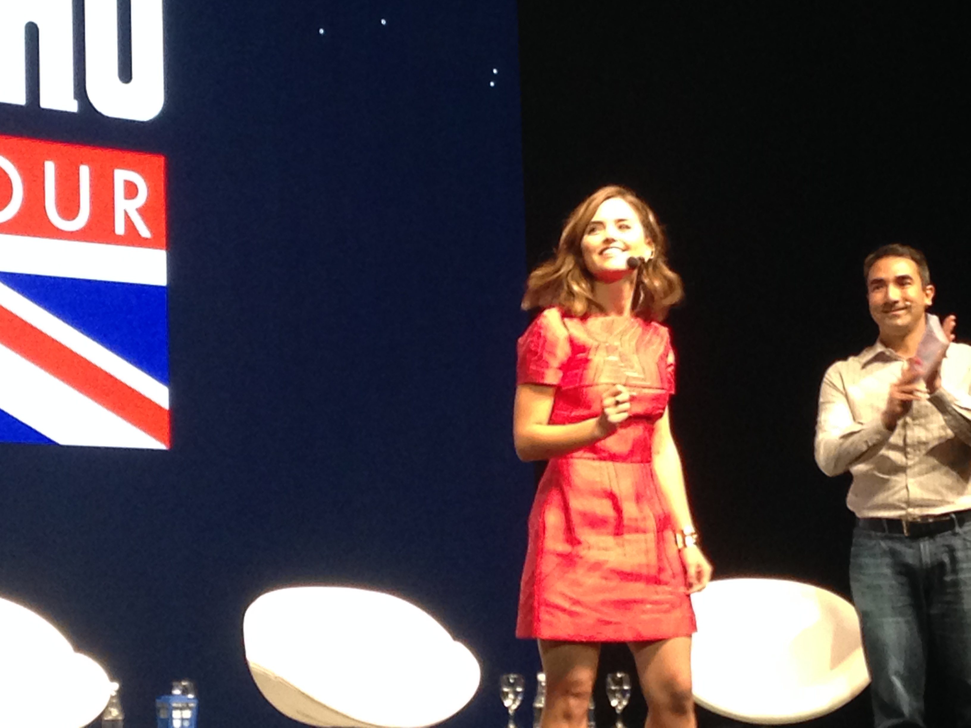 Jenna Coleman, a fofinha, interagiu bastante com o público e era só sorrisos. Ela explicou que na 8ª temporada veremos mais da vida real de Clara Oswald, professora de Literatura Inglesa da Coal Hill High School, que terá um relacionamento com o colega de trabalho Danny Pink. Segundo Jenna,