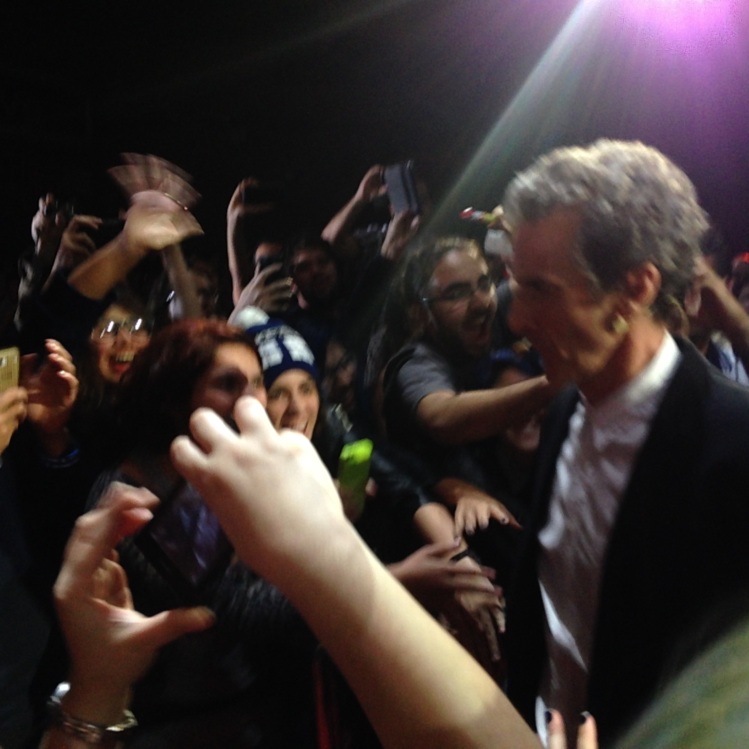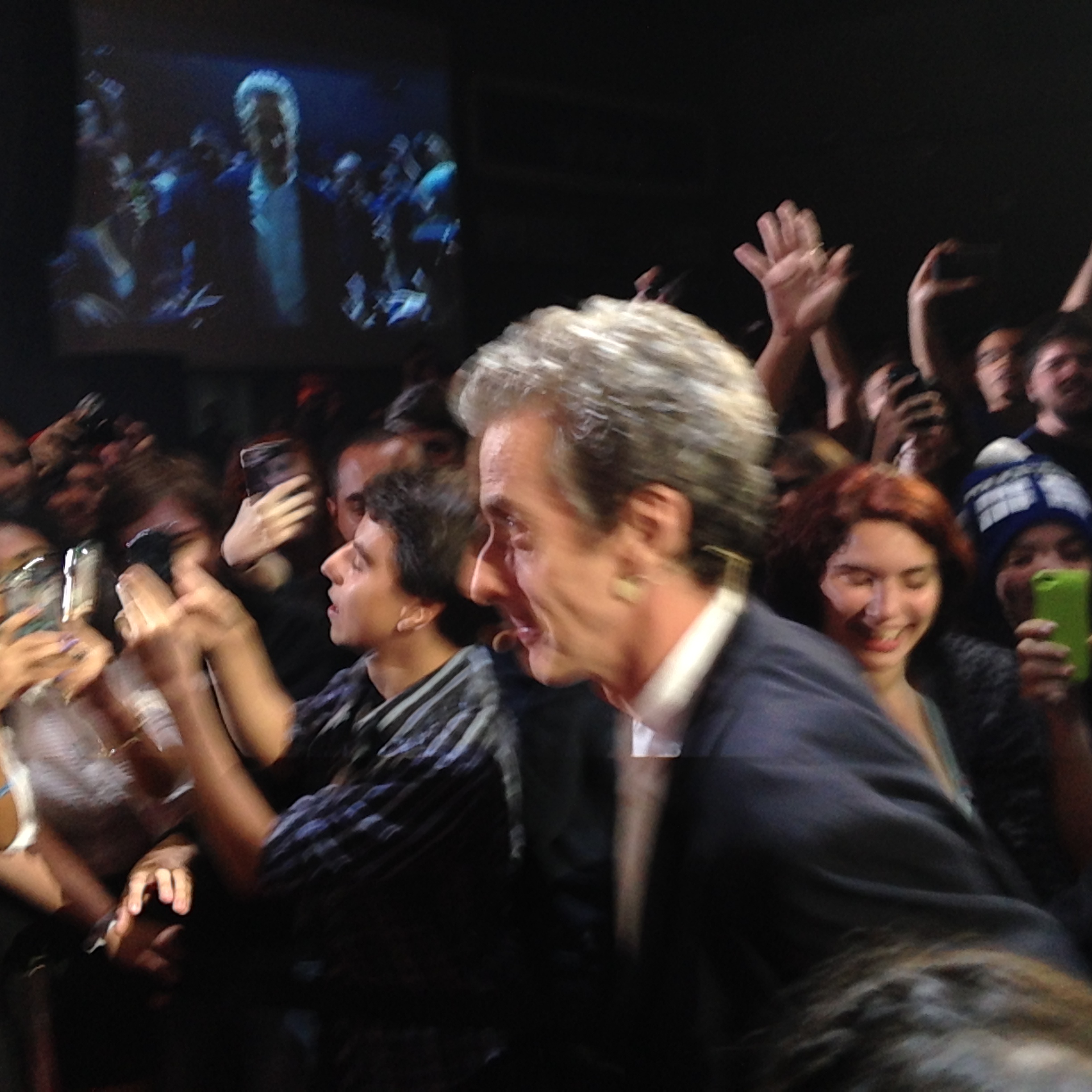 Peter Capaldi estava super à vontade, feliz de estar com o público pela primeira vez. Ele elogiou todos os atores que passaram pelo papel principal, e quando perguntado sobre ser mais obscuro, ele disse que os outros Doutores também eram assim. Para ele,