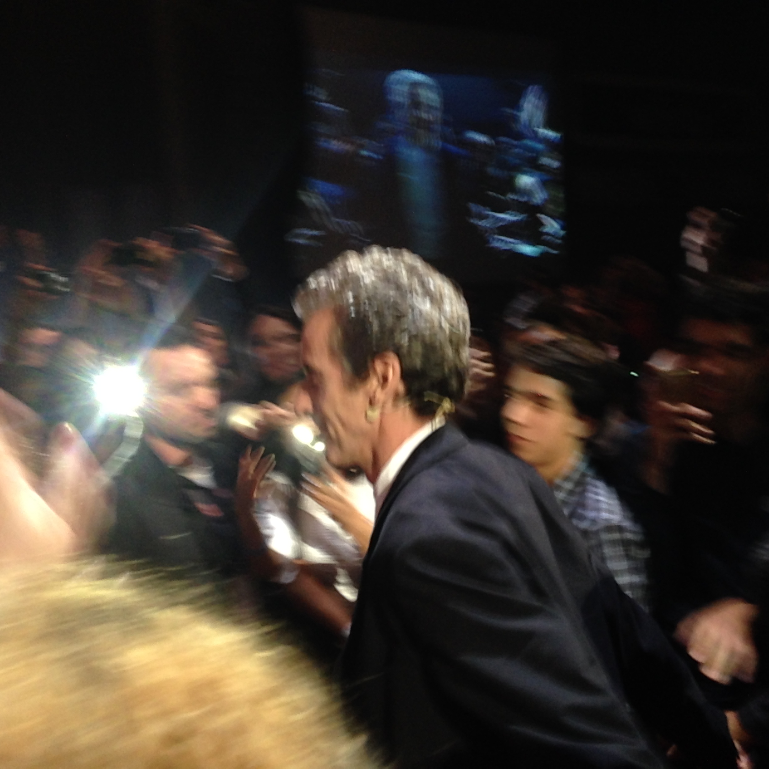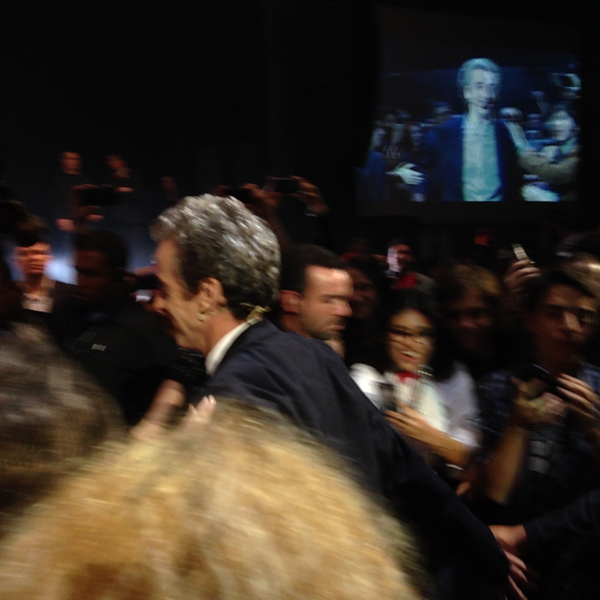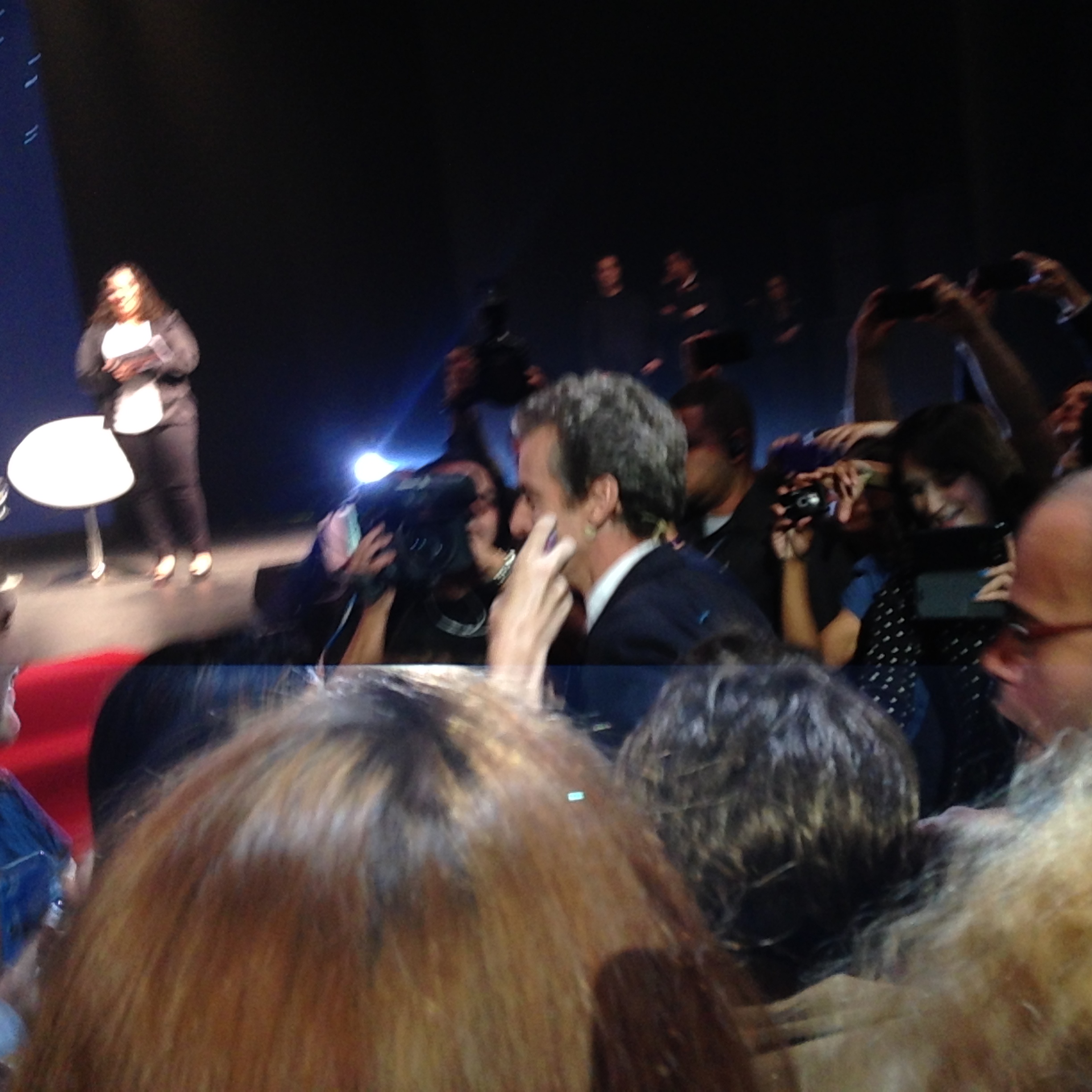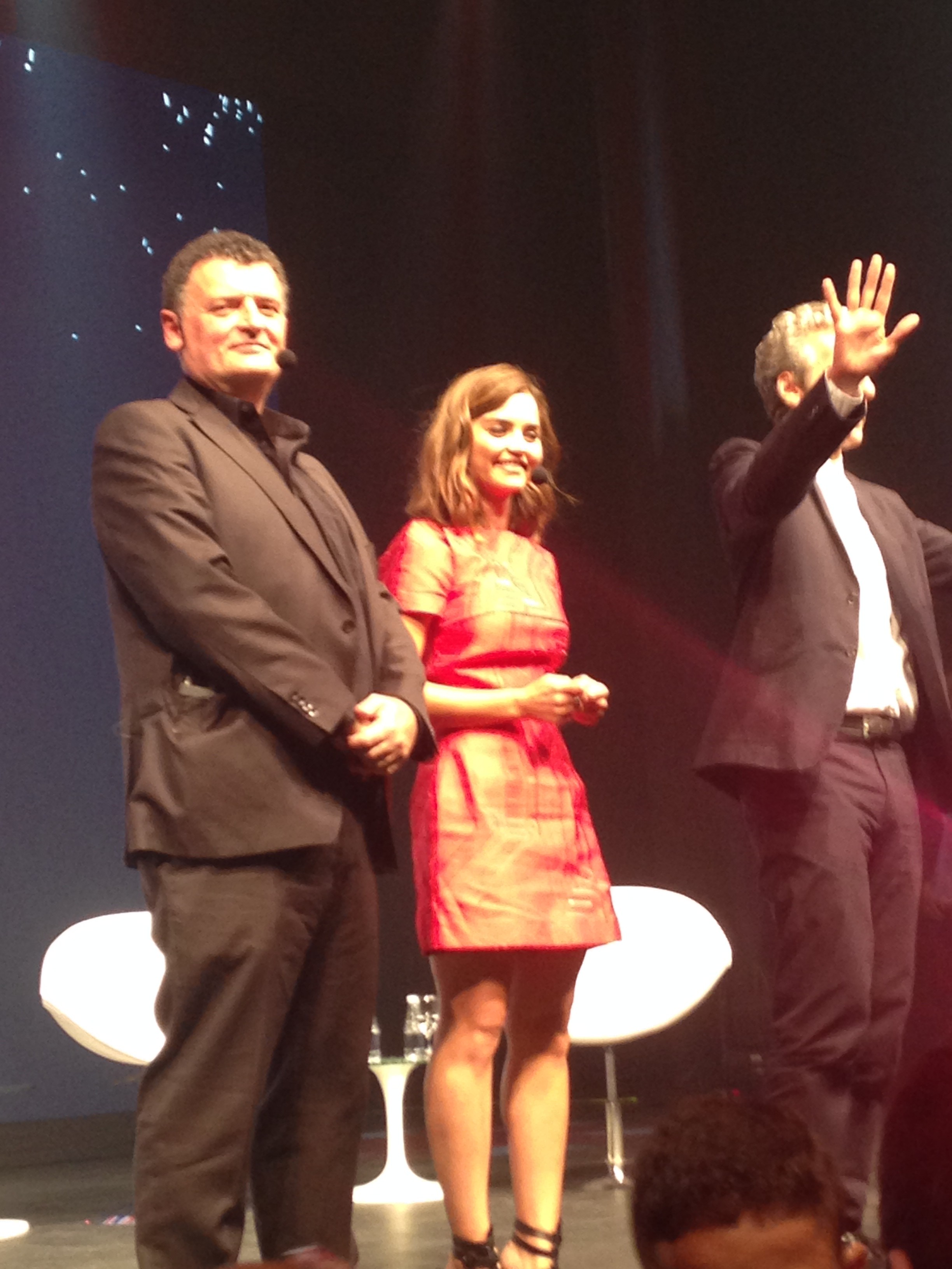 O primeiro a entrar no palco foi Steven Moffat, aka Moff, o ex-troll – que passou de um dos seres mais temidos do universo de Doctor Who para um dos mais carismáticos em questão de horas! Logo depois, Jenna Coleman foi recepcionada com mais aplausos da galera. E então o momento que todos estavam esperando chegou. Vindo do fundo do Vivo Rio, acompanhado por seguranças e passando pelo corredor, lá veio ele, PETER CAPALDI, o 12º Doutor! <3 <3