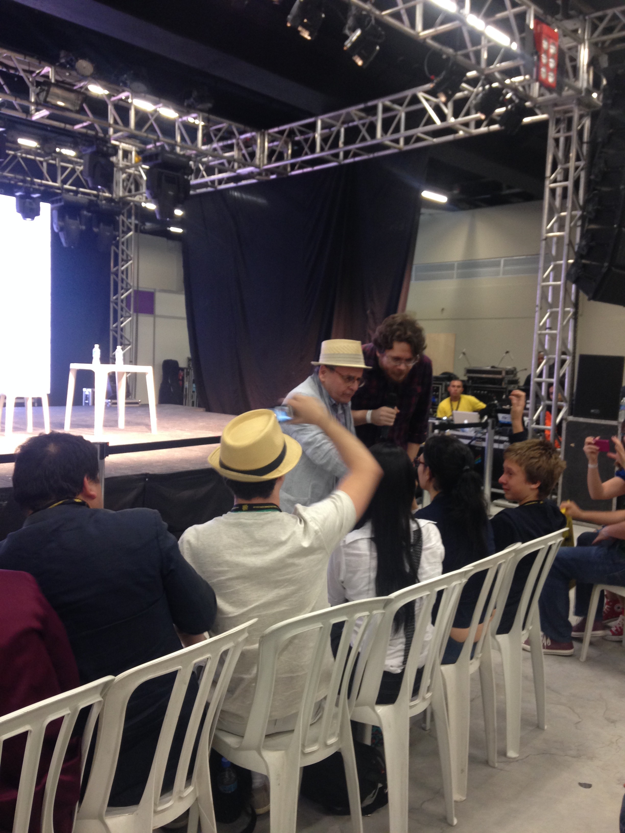 Essa atitude também pôde ser vista no palco. Com o auditório lotado – e bastante gente em pé! – o ator escocês foi entrevistado por Roberto Sadovski, e contou várias curiosidades sobre Doctor Who e a trilogia O Hobbit, onde interpreta o mago Radagast. No final, ele ainda fez uma surpresa e desceu até a plateia para responder perguntas dos fãs. Um amor! <3 <3
